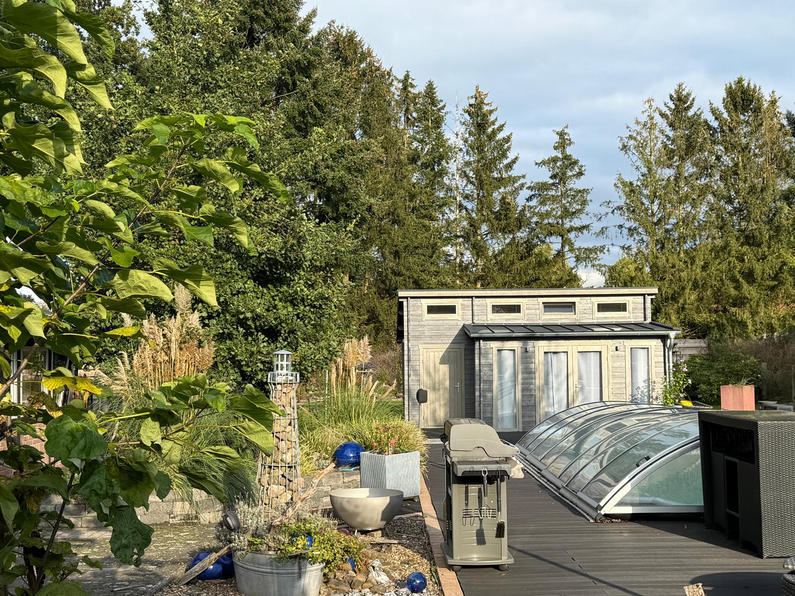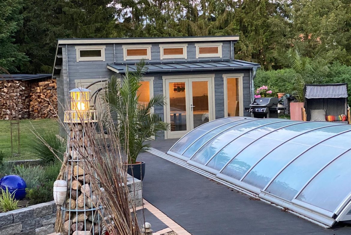 Gartenhütte mit Nebenraum und Wasseranschluss, – SAT-Schüssel