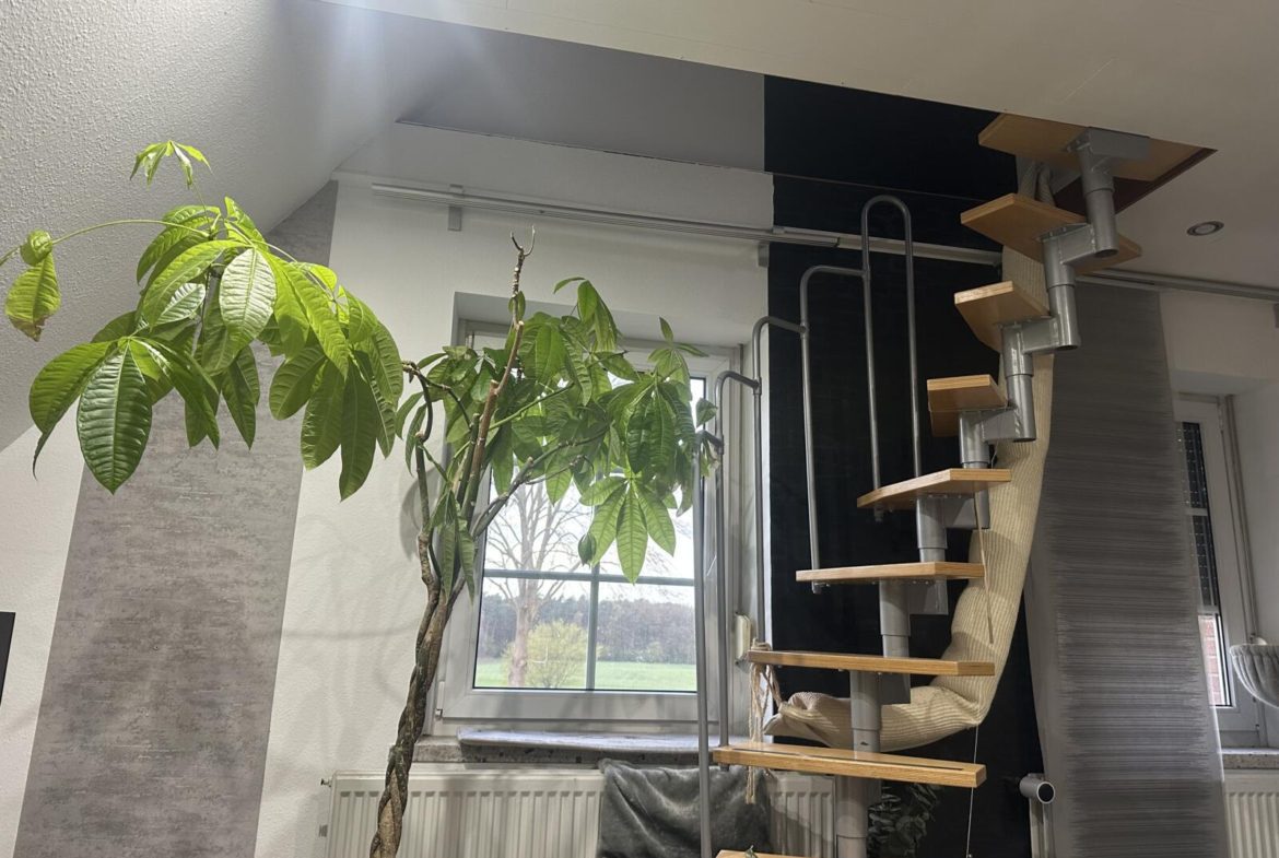 Großer Wohnraum mit Treppe zum Spitzboden