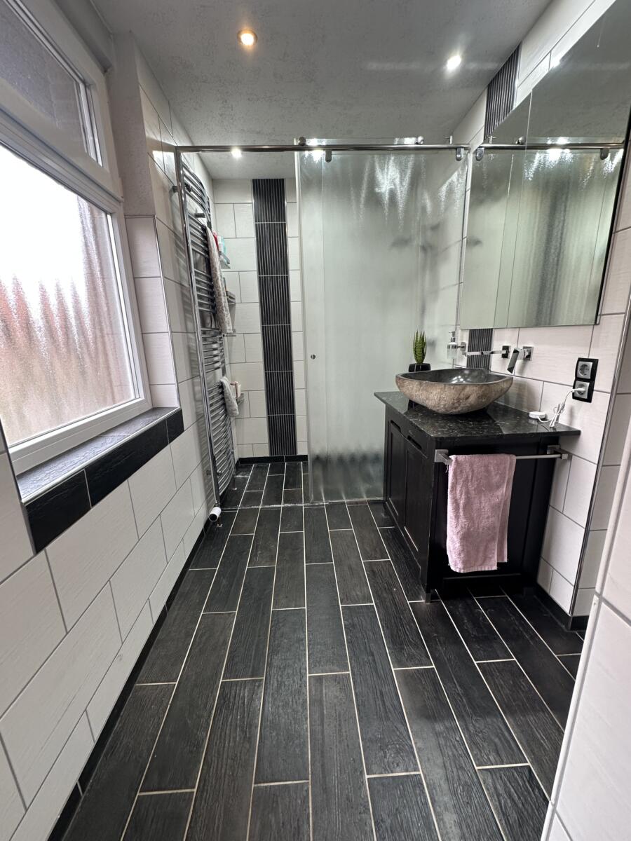 Bad mit WC und großer ebenerdiger Dusche