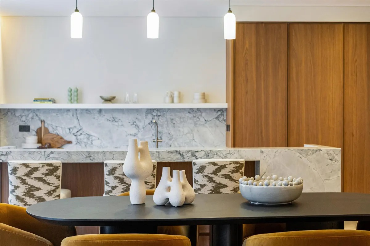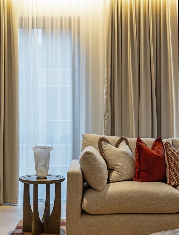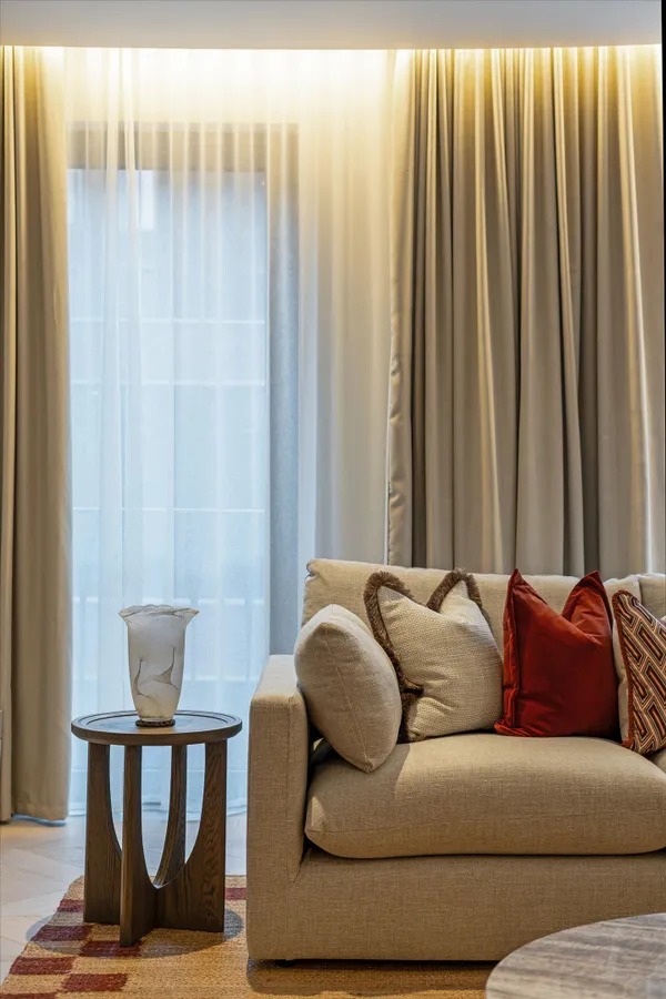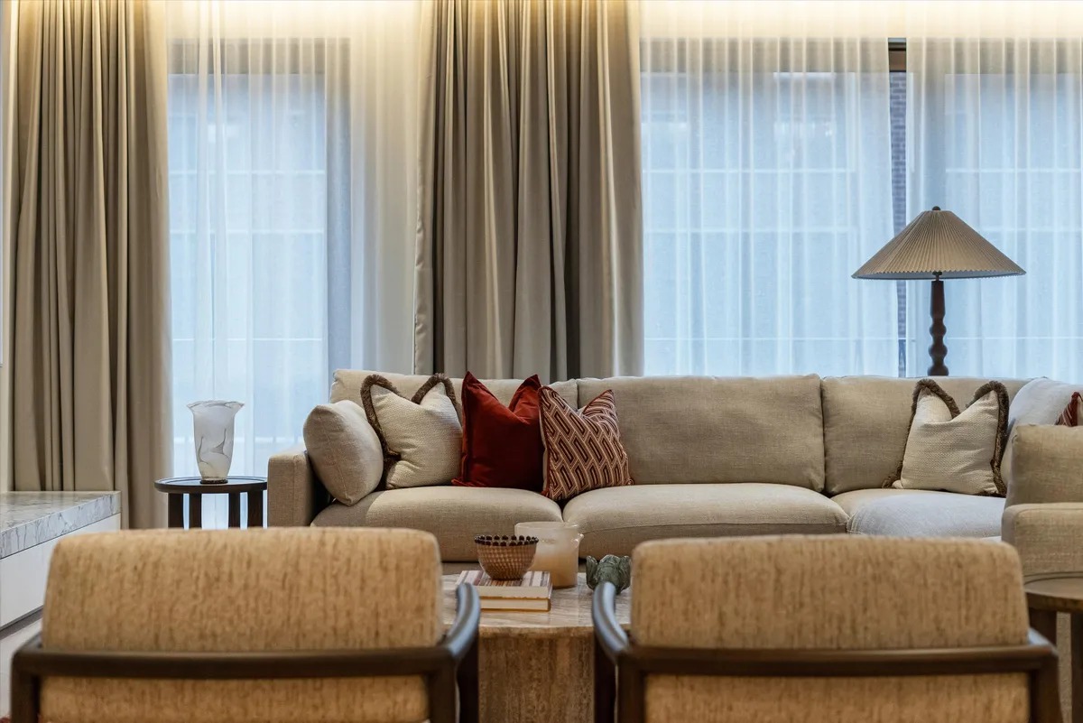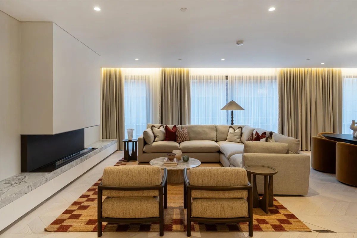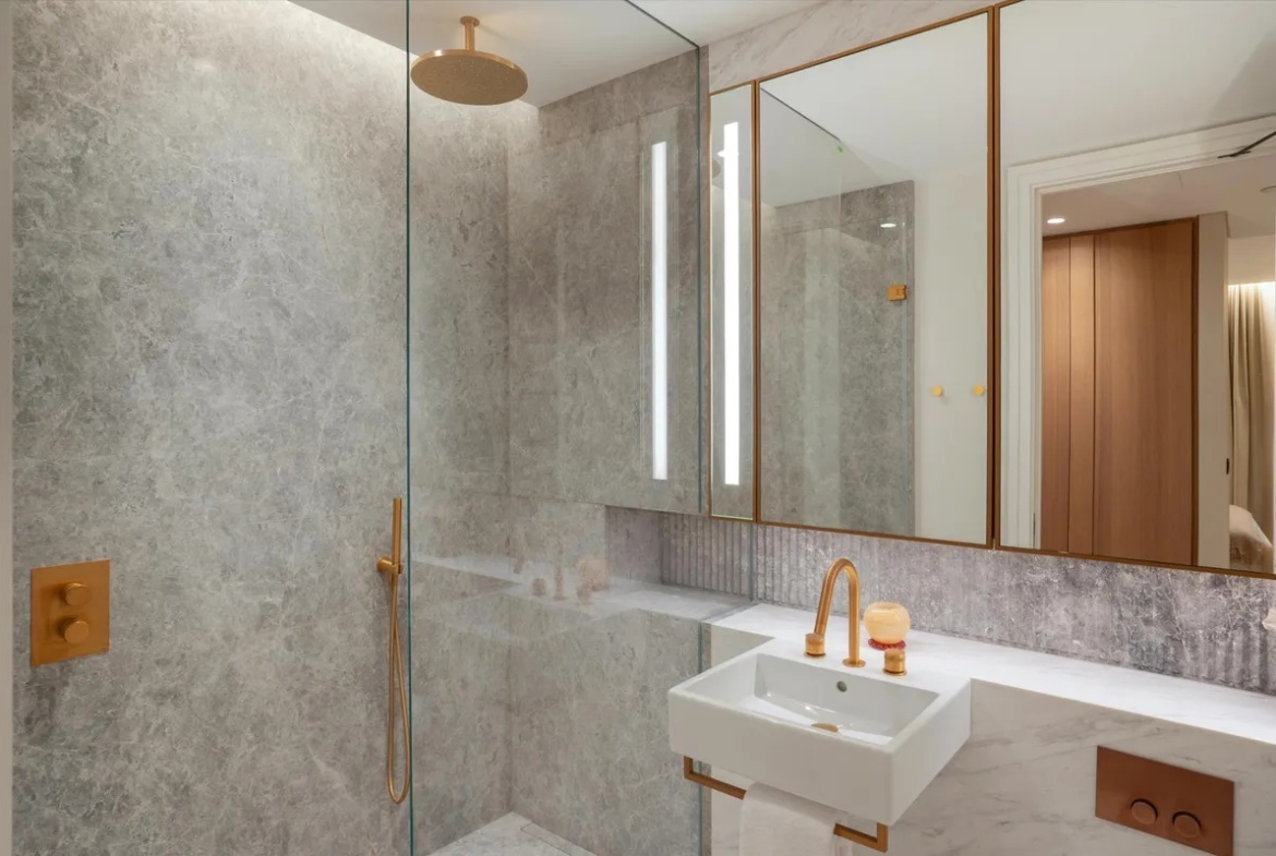 Die Wohnung ist vollständig und modern möbliert. Die Möbel sind in einem guten Zustand und passen gut zum offenen Wohnkonzept. Der Boden in der gesamten Wohnung besteht aus hochwertigem Parkett aus natürlichem Holz, was den Räumen eine warme Atmosphäre gibt. Die offene Küche im amerikanischen Stil ist praktisch gestaltet und integriert sich harmonisch in den Wohnbereich.