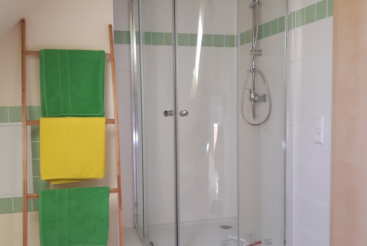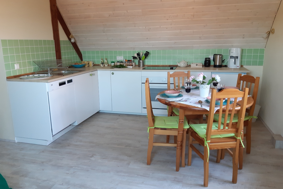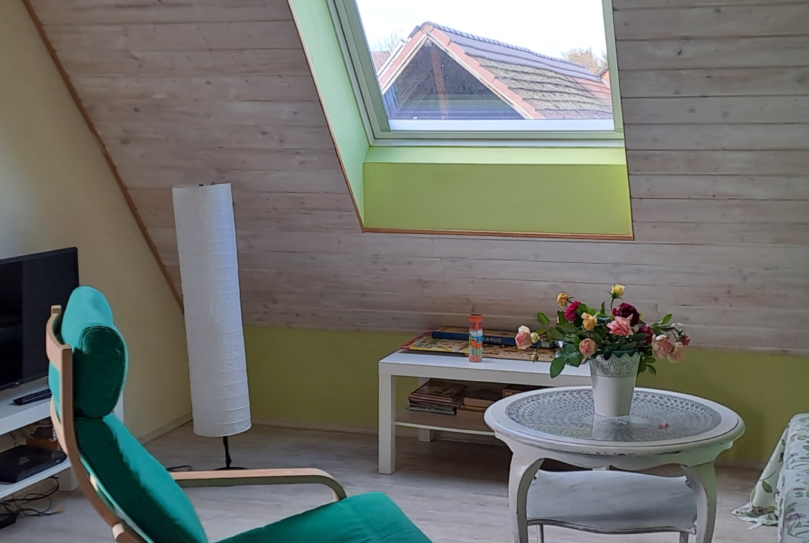 2-Zimmer-Wohnung im 2.OG: 45 qm, offener Wohn-Essbereich, Duschbad, Balkon, es handelt sich um den im Jahr 2020/21 ausgebauten Dachboden.