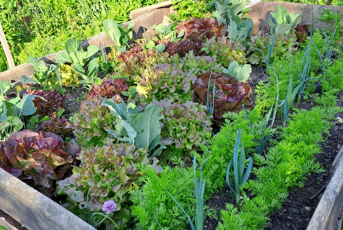 Ich versichere Ihnen- es ist ein wunderbares Gefühl, für die Zubereitung des Mittagessens in den großen Gemüsegarten zu gehen, alle Zutaten von den Kräutern bis zum Salat, den Kartoffeln oder Tomaten, aus den Hochbeeten ernten zu können. Das Gewächshaus beherbergt die Melonen.