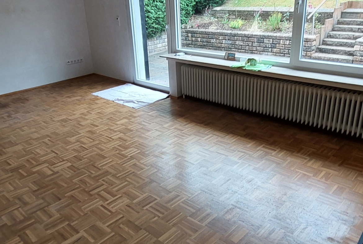 Der Renovierungsaufwand hält sich sehr in Grenzen, lediglich müssen in 5 Räumen Bodenbeläge gelegt werden und in den Zimmern die Wände tapeziert werden.