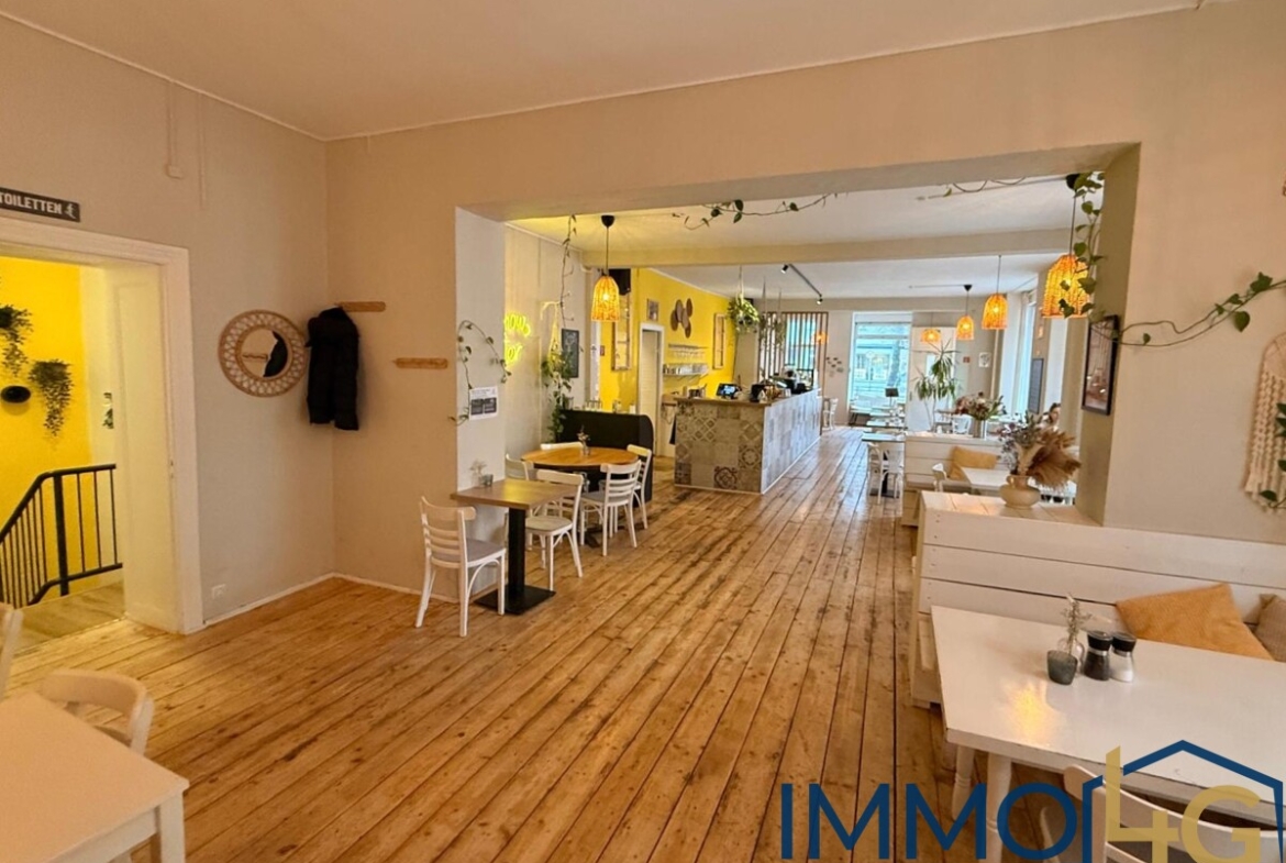 Die Immobilie verfügt über eine Gesamtfläche von ca. 302 m². Im Erdgeschoss befindet sich ein großzügiger, heller Gastraum mit einer Fläche von etwa 113 m², inklusive eines abgetrennten Raucherbereichs. Ergänzt wird diese Ebene durch zwei Lagerräume sowie eine voll ausgestattete und betriebsbereite Gastroküche. Dank der großen Fensterflächen wirkt der Gastraum offen, freundlich und lichtdurchflutet – ideale Voraussetzungen für einen erfolgreichen Restaurant- oder Barbetrieb.